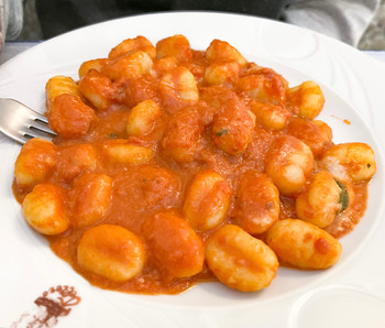 My stomach seemed a little uneasy so I went with a simple panini for lunch. I have to admit that while the prosciutto was tasty, there wasn’t much meat on it but it did have a nice hunk of fresh mozzarella. For dinner we found this very small restaurant. The Nona greeting us spoke no English so we made our order very simply. I had rigatoni bolognese and Julie had gnocchi. Both were tasty but the best part of the meal was the dessert, a cream puff smothered in a chocolate fudge. Inside the cream puff was the best whipped cream I’ve ever had, it was almost like ice cream. Of course Julie said she didn’t want any dessert, but we ended fighting over the last bite. Next time I’m ordering two. Since we had a full day scheduled for Friday, we both decided to call it an early night.
